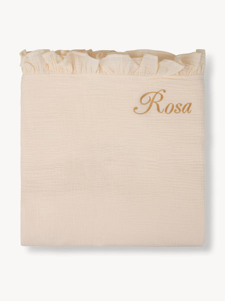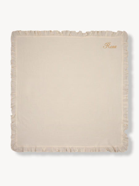 • Besides being a real eye-catcher, the ruffle hydrophilic cloth is also the answer to everything! As an extra blanket in the stroller, for over your shoulder to catch little burps or as a towel after a warm bath. And how nice is this personalised hydrophilic ruffle cloth made of lovely soft cotton: Ideal for your newborn baby. Make it even more personal by having it personalised with the most beautiful embroidery thread. Have you, like us, fallen in love with the hydrophilic ruffle cloth? Make the set complete with our Le Olive Baby pacifier cloths.