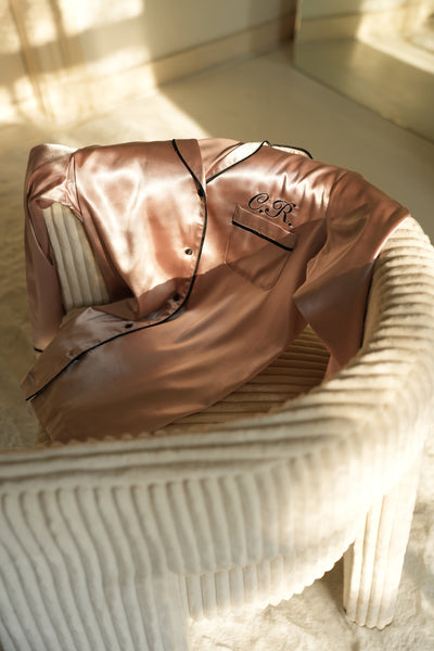 • Pajamas are not only fun for yourself, but also fun to give as a gift. We offer the possibility to wrap the gift for you in a luxury gift box. You can complete your pajamas with a matching caramel sleeping mask! You can even have the sleeping mask personalised. Get ready to relax in style!