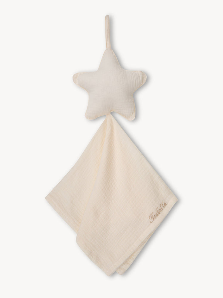 • ¡Saluda al primer mejor amigo de tu bebé! Este Paño Chupetero con forma de Estrella, es adorable y muy abrazable, y está hecho de un material súper suave. Además de ser un amigo tierno, la tela tiene otra función útil: hay un lazo especial en la tela para sujetar un chupete. De esta manera, es menos probable que el chupete se pierda o se caiga de la cuna. Personaliza este Paño Chupetero con el nombre de tu peque y regálale un amigo para toda la vida y un recuerdo imborrable.