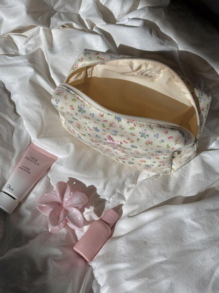 • Beauty in a bag! Nuestra caja de maquillaje es perfecta para guardar tus productos favoritos de maquillaje y cuidado de la piel. Pequeños detalles como el lazo y el estampado floral hacen que esta caja de maquillaje sea muy linda. Gracias a su tamaño compacto, cabe fácilmente en tu maleta. Personaliza la caja de maquillaje con tu nombre o iniciales. Cada caja de maquillaje está bordada con amor en nuestro propio taller usando los mejores hilos de bordado. Date un capricho o sorprende a alguien especial con esta preciosa caja de maquillaje personalizada. Haz que tu regalo sea aún más especial con nuestro embalaje para regalos. Nos encargamos de todo por ti con gusto. ¿Te has enamorado de esta caja de maquillaje, como nosotros? Completa el set con una bolsa para herramientas de cabello o una bolsa de maquillaje a juego. Haz tu pedido hoy mismo.