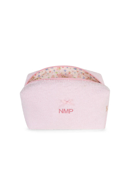 • Beauty in a bag! Nuestra bolsa para maquillaje es perfecta para guardar tus productos favoritos de maquillaje y cuidado de la piel. Pequeños detalles como el lazo y el forro floral hacen que esta bolsa sea muy linda. Gracias a su tamaño compacto, cabe fácilmente en tu bolso o maleta. Personaliza la bolsa con tu nombre o iniciales. Cada bolsa está bordada con amor en nuestro propio taller usando los mejores hilos de bordado. Date un capricho o sorprende a alguien especial con esta preciosa bolsa de maquillaje personalizada. Haz que tu regalo sea aún más especial con nuestro embalaje para regalos. Nos encargamos de todo por ti con gusto. ¿Te has enamorado de esta bolsa, como nosotros? Completa el set con una bolsa para herramientas de cabello a juego o una caja de maquillaje. Haz tu pedido hoy mismo.
