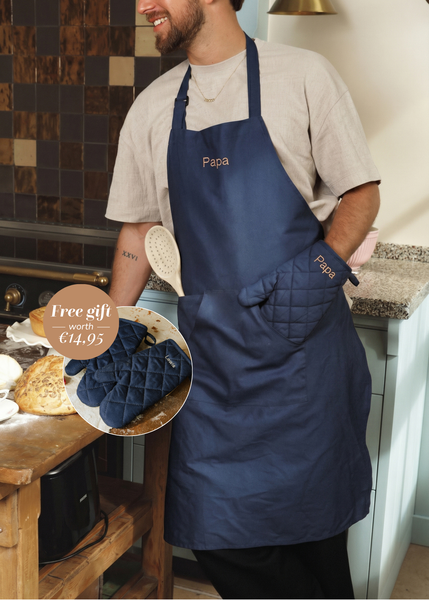 • Klassieke apron van 100% katoen in een diepe navy kleur – stijlvol, veelzijdig en duurzaam. De hoogwaardige, ademende stof biedt optimaal draagcomfort, terwijl de eenvoudige pasvorm met brede schouderbanden en praktische zakken zorgt voor gebruiksgemak. Personaliseer met naam of initialen, met zorg geborduurd in ons eigen atelier – ideaal als persoonlijk cadeau of voor dagelijks gebruik.