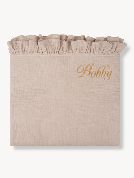 • Naast dat de hydrofiele ruffle doek een echte eye-cather is, is deze ook de answer to everything! Als extra dekentje in de kinderwagen, voor over je schouder om boertjes mee op te vangen of een handdoek na een warm badje. En hoe leuk is deze gepersonaliseerde hydrofiele Ruffle doek gemaakt van heerlijk zacht katoen: Ideaal voor jouw newborn baby. Maak hem nog persoonlijker door deze te laten personaliseren met de allermooiste borduurgaren. Ben je, net als wij, verliefd geworden op de hydrofieledoek Maak de set dan helemaal compleet met de gepersonaliseerde speendoekjes.