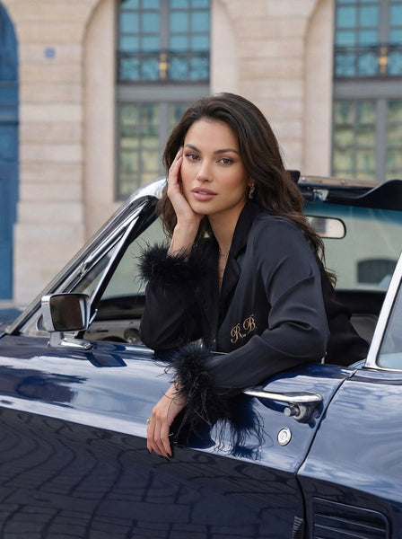• Met de Black Feather Pyjama uit de Rose Bertram-collectie ben je letterlijk en figuurlijk een echte sleeping beauty! Deze pyjama is niet alleen een eyecatcher, ook de stof voelt heerlijk zacht aan. De veren op de mouwen geven de pyjama nog eens een extra chique uitstraling. Feel cozy at home and looking fabulous at the same time! Maak je item uniek door het te personaliseren met de mooiste borduurgaren.