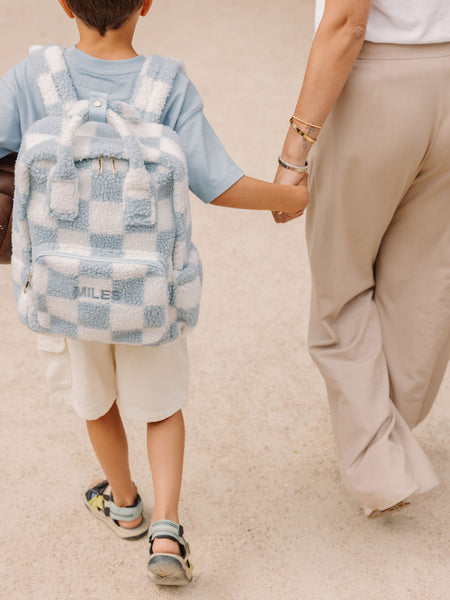 • Dit stoere rugzakje met geblokte print is gemaakt van superzachte teddystof en perfect voor alle kleine avonturen. Of het nu gaat om een schooldag, een uitje met mama of sportactiviteiten, alle essentials passen erin! Dankzij de verstelbare schouderbandjes groeit het rugzakje mee en zit het altijd comfortabel. Personaliseer het rugzakje met de naam van je kleintje. Elk rugzakje wordt met liefde geborduurd in ons eigen atelier, met de mooiste borduurgarens. Een praktisch én schattig accessoire dat elke outfit helemaal afmaakt! Liever iets kleiner? Dit rugzakje is ook in een klein formaat verkrijgbaar.